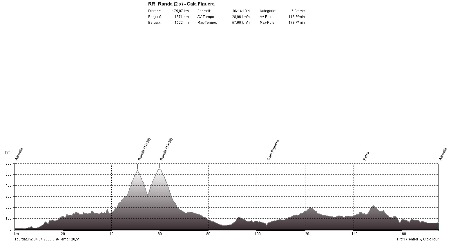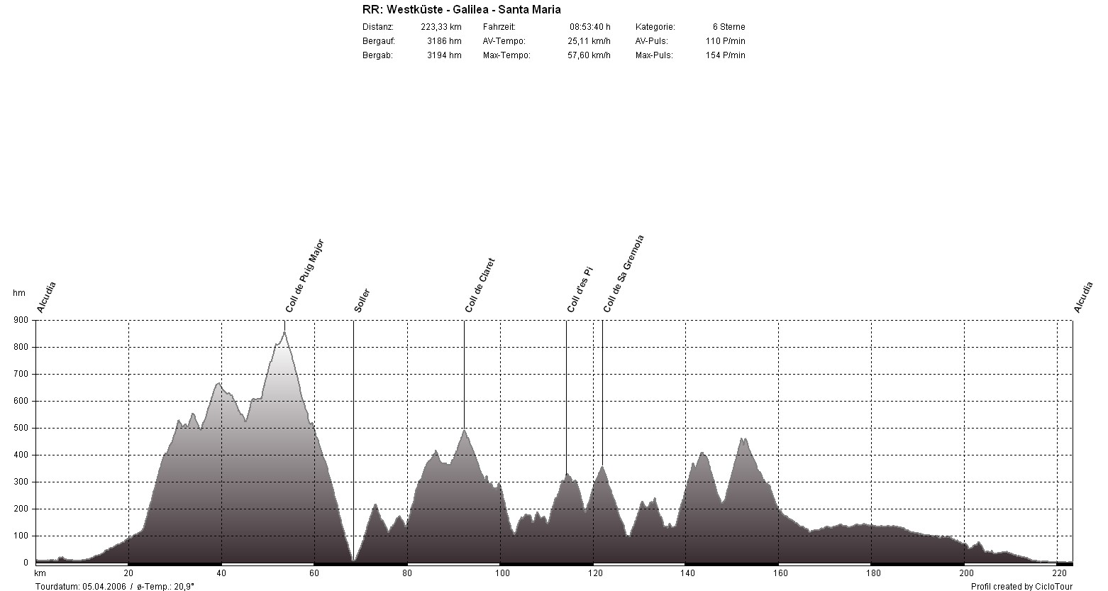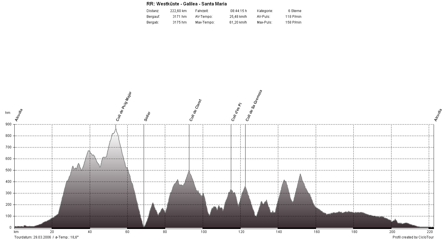 01 Tag: Santa Maria, Llucmajor, Petra (134 KM | 802 HM)