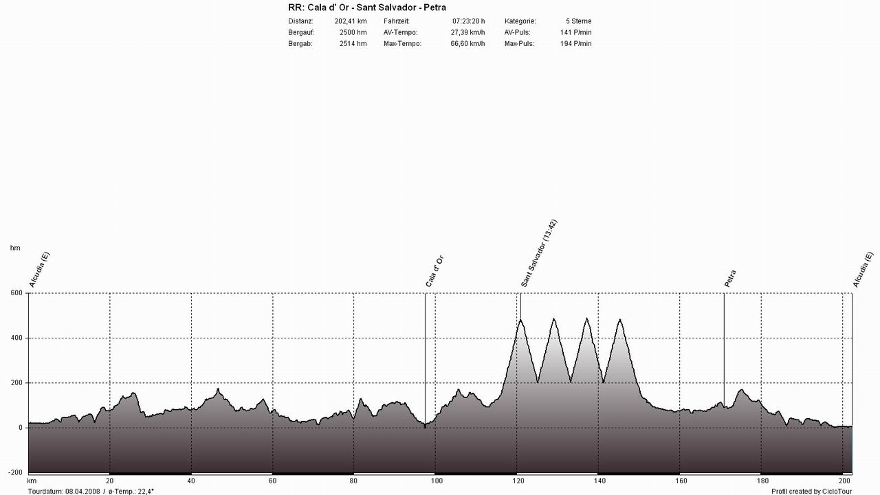 04 Tag: Cap Vermell - Cala Ratjada - Cala Mesquida - Santa Maria (205 KM | 1.362 HM)
