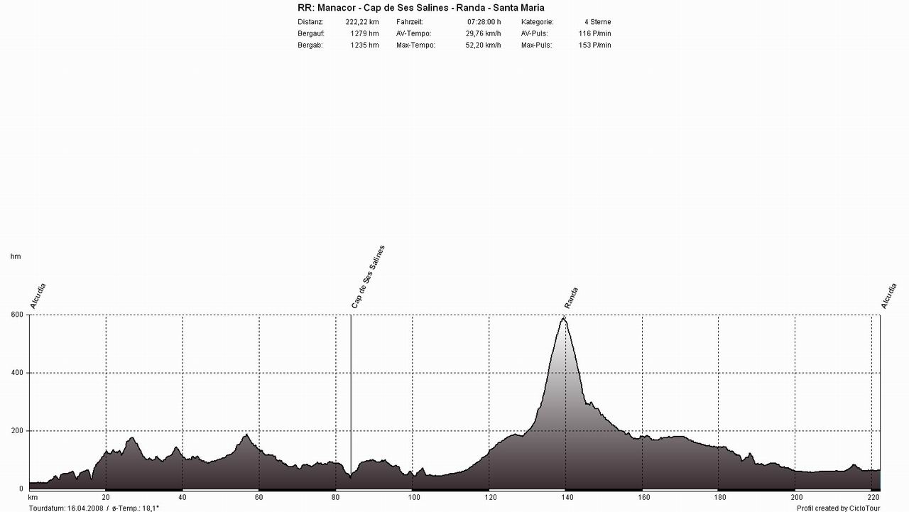 06 Tag: Manacor - Ses Saline - Randa - Santa Maria (187 KM | 1.133 HM)