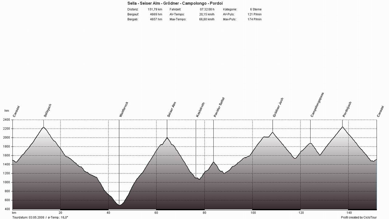 03 Tag: Sella - Seiser Alm - Grödner - Campolongo - Pordoi (152 KM | 4.669 HM)
