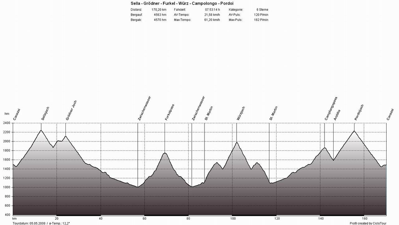 05 Tag: Sella - Grödner - Furkel - Würz - Campolongo - Pordoi (170 KM | 4.563 HM)