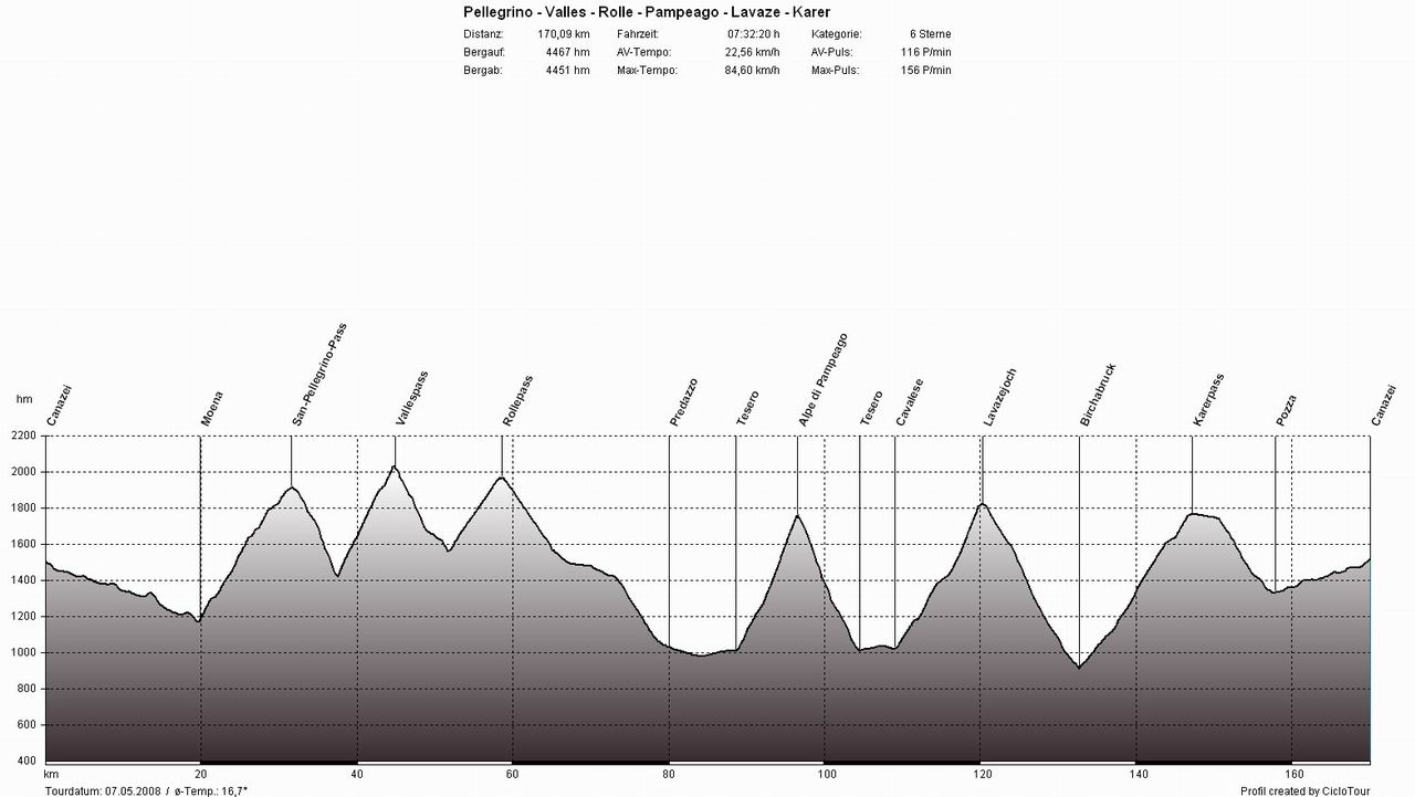 07 Tag: San Pellegrino - Valles - Rolle - Pampeago - Lavaze - Karer (170 KM | 4.467 HM)