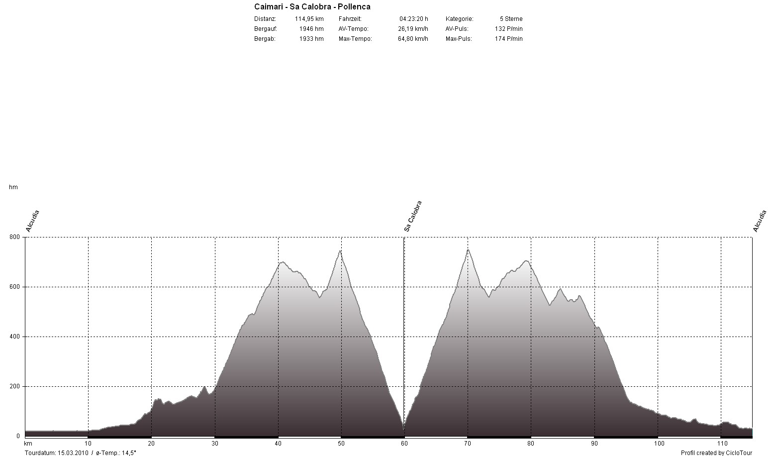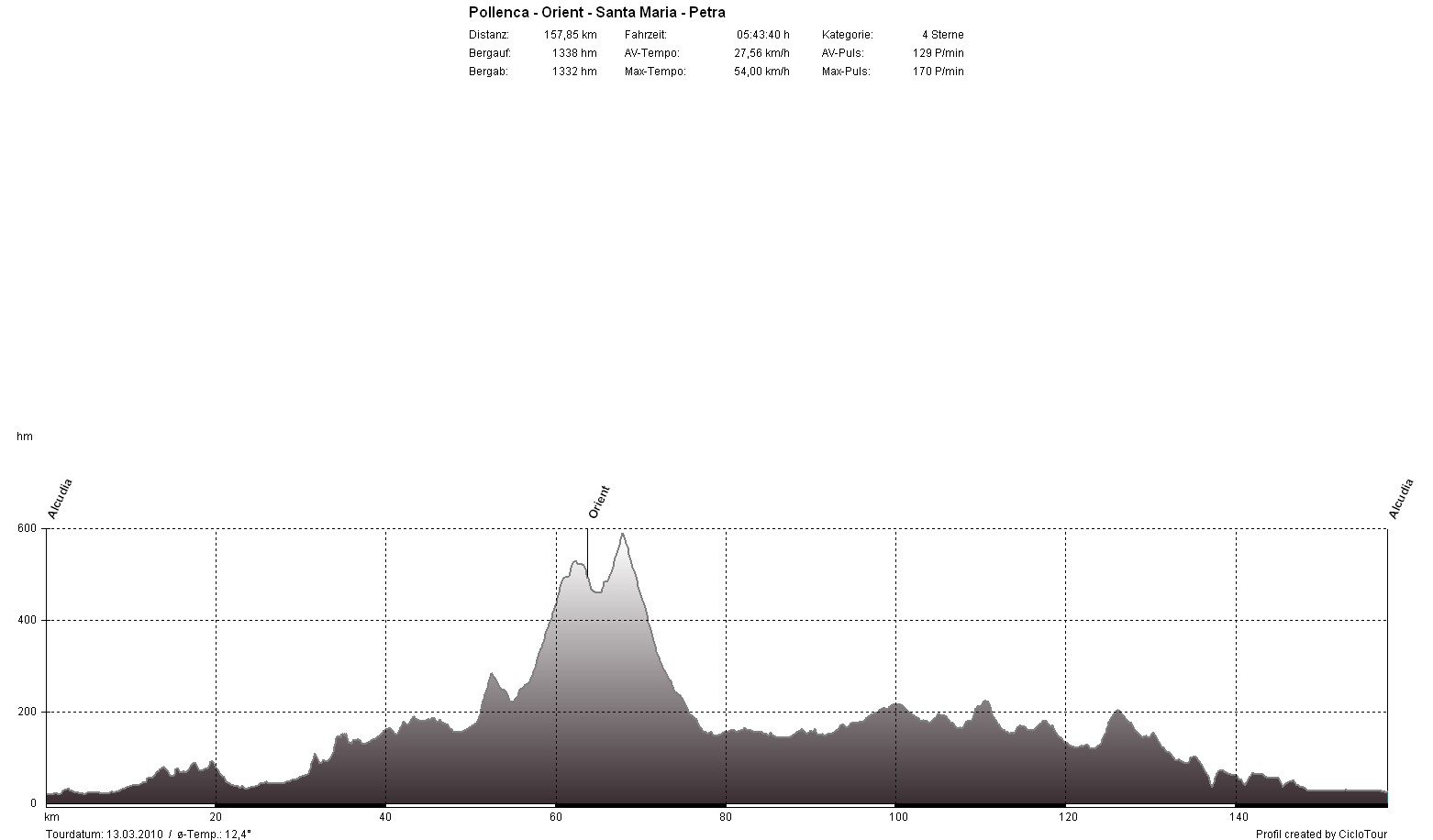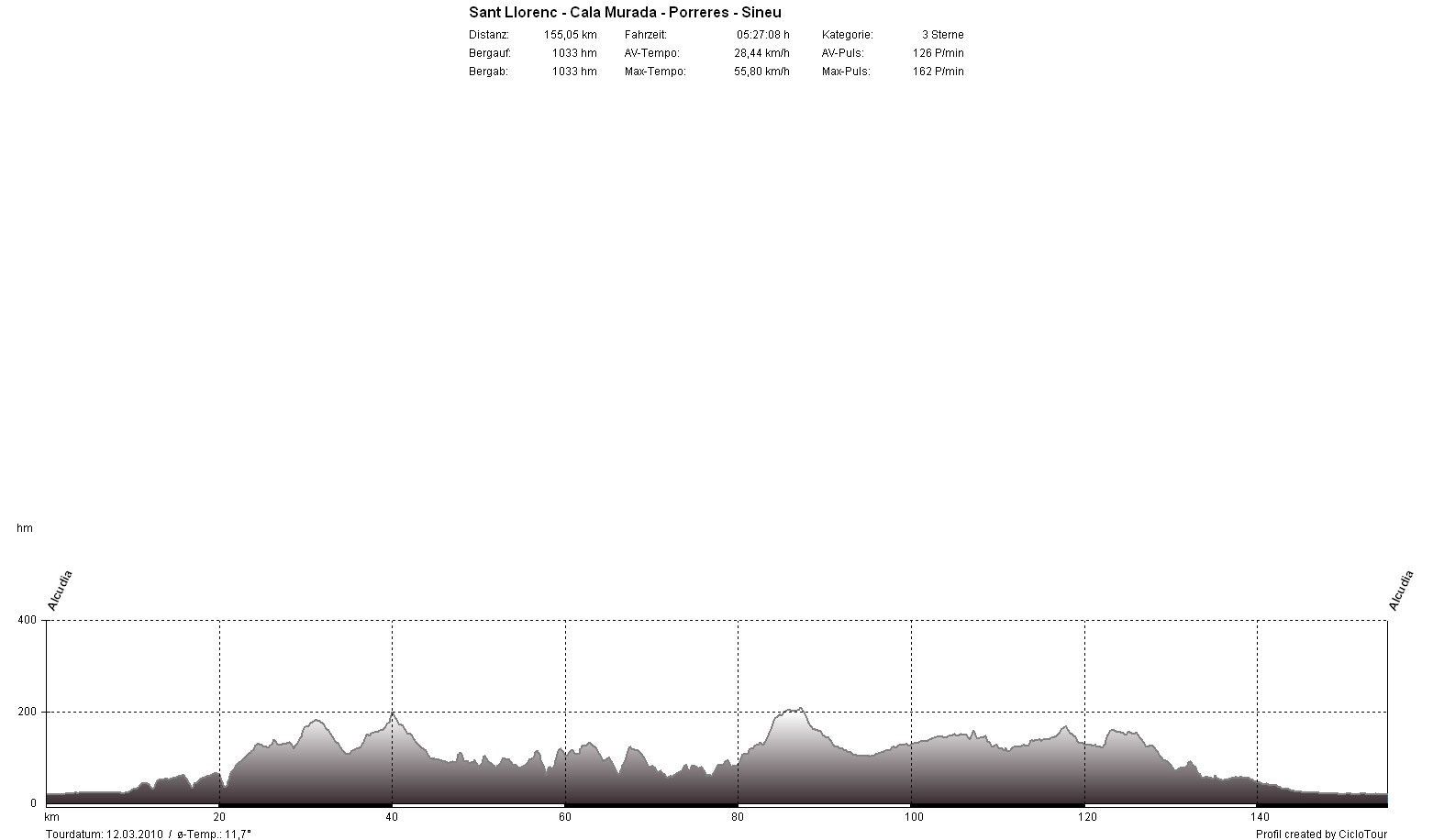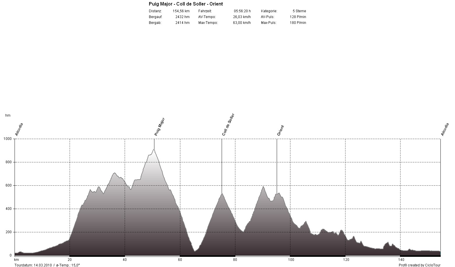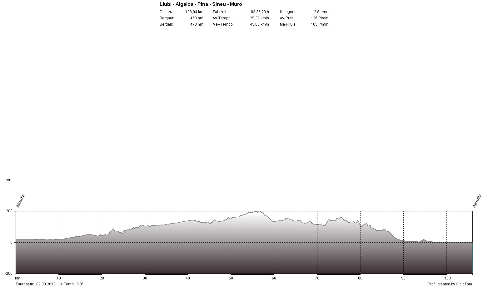 So früh im Jahr war ich noch nie auf Mallorca und das bekam ich auch sofort zu spühren. Bereits an den ersten Tagen machte sich ein deutliches Leistungsdefizit zu meinen Vorjahres-Trainingslagern bemerkbar. Bis zum Trainingslager kam ich in Deutschland mit dem Rad noch kaum auf die Straße und wenn, dann nicht lange. So tat ich mir die ersten Tage noch relativ schwer, es wurde jedoch von Tag zu Tag besser und so standen am Ende nach 48 Stunden 1.285 Kilometer und 11.072 Höhenmeter auf meinem Tacho. Das ergibt einen Tagesdurchschnitt von 4:48 Nettostunden, 129 Kilometer und 1.107 Höhenmeter.